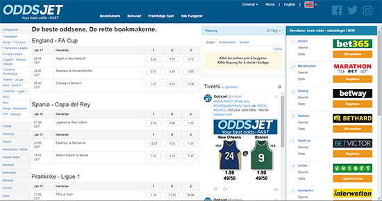 Enkelt sagt, OddsJet er det beste stedet for odds sammenligning for norske idrettsspillere. Det er raskt, gratis og privat. Siden det ikke er noen registreringsprosess, blir det ikke lagret data eller personlig informasjon.